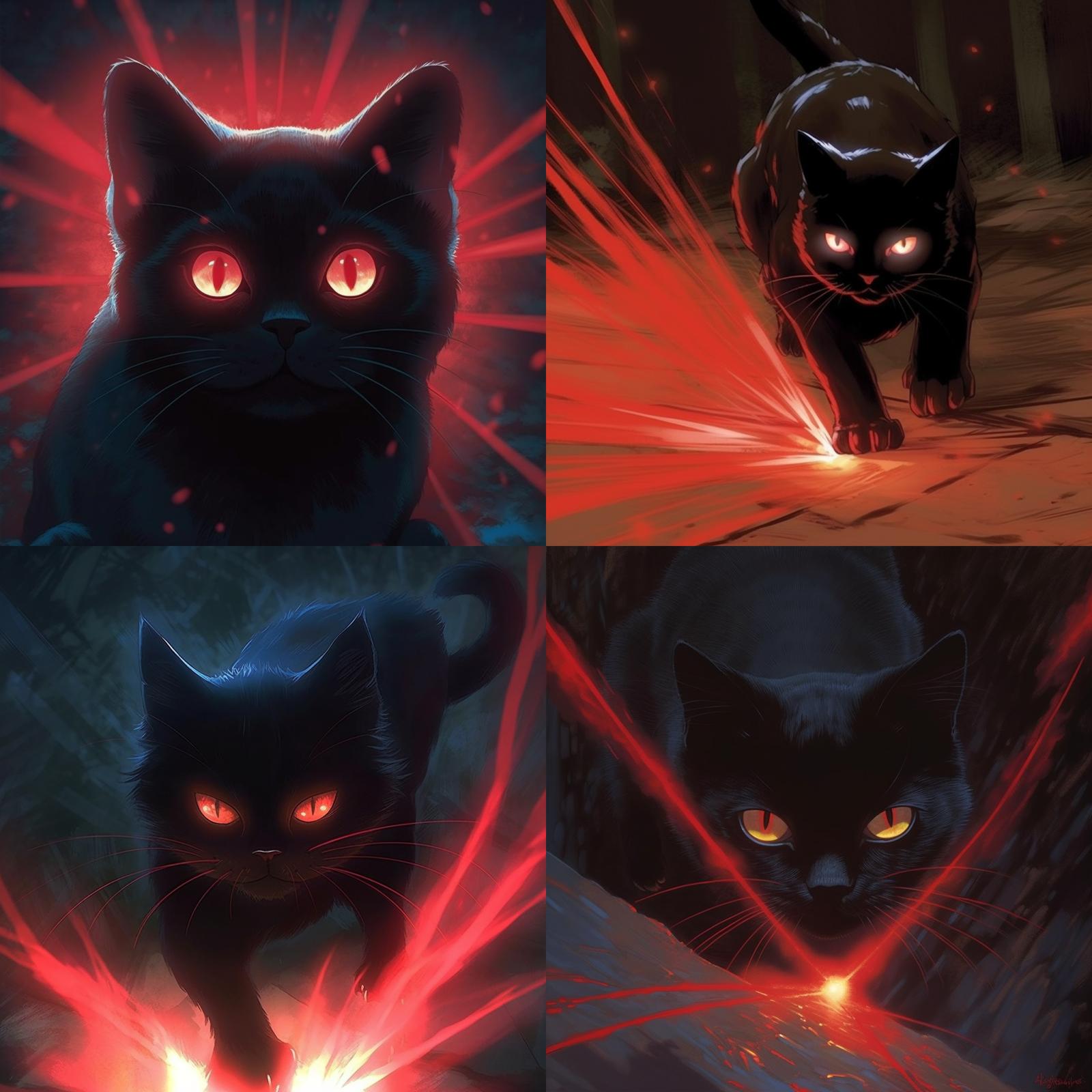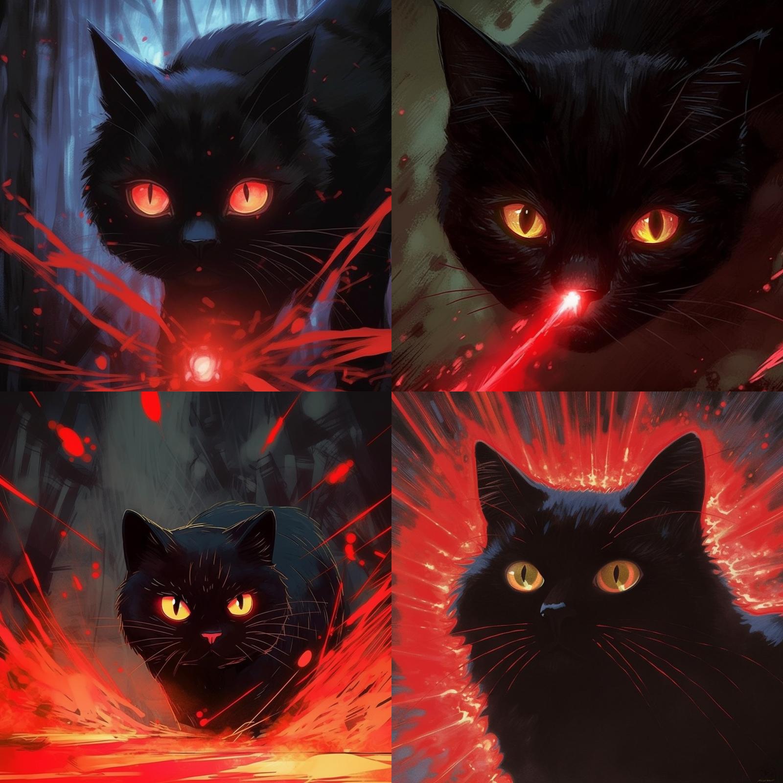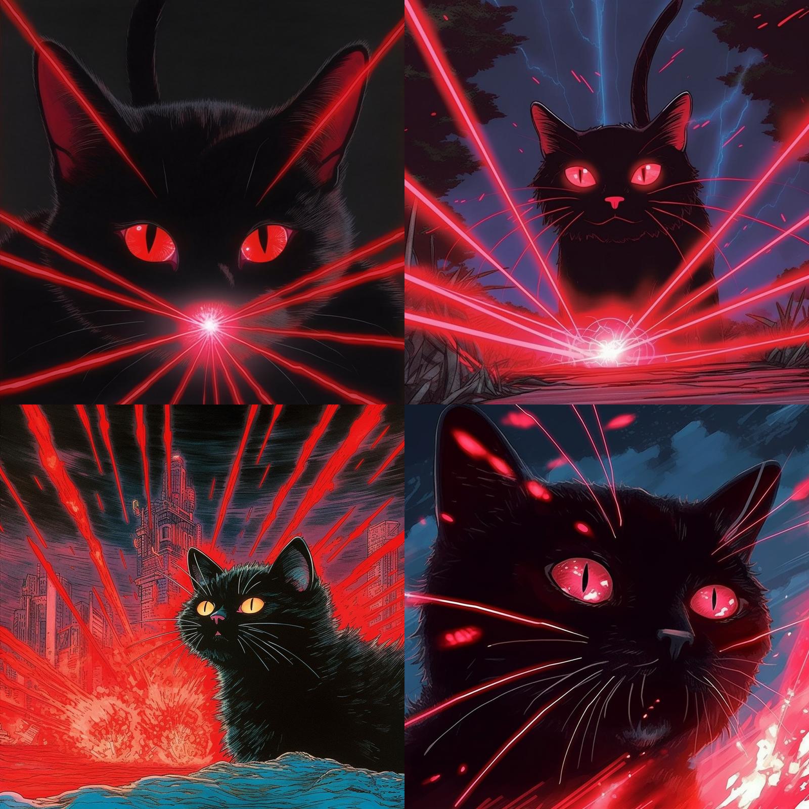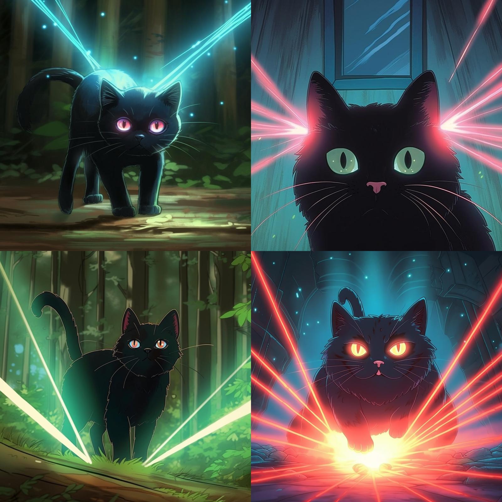 Ein simples Beispiel: Mein Blog- und Podcast-Kollege Sascha hatte sich gewünscht, dass ich ihm sein Blog-Keyvisual, eine Katze, die Laser aus den Augen schießt, im Ghibli-Stil generiere. Aber trotz einem Dutzend Prompt-Varianten – das Bild wollte einfach nicht entstehen. Ob wegen der Gewaltfilter von Midjourney oder weil einfach nicht genug Lernmaterial dazu vorhanden war, kann ich nicht sagen. Aber Tatsache war: Midjourney konnte mir viele viele Bilder mit Katzen und Lasern bauen, manche davon erinnerten sogar an Studio Ghibli, aber in keinem der Bilder kamen die Laserstrahlen aus den Augen der Katze.